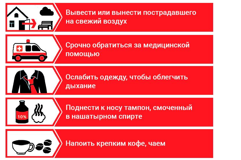 Нахождение в течение двух часов в помещении с концентрацией СО в воздухе лишь 0,1% приводит к потере сознания, после чего человек может быстро умереть. Потеря сознания сопровождается таким упадком сил, что человек даже заметив опасность, уже не может спастись.